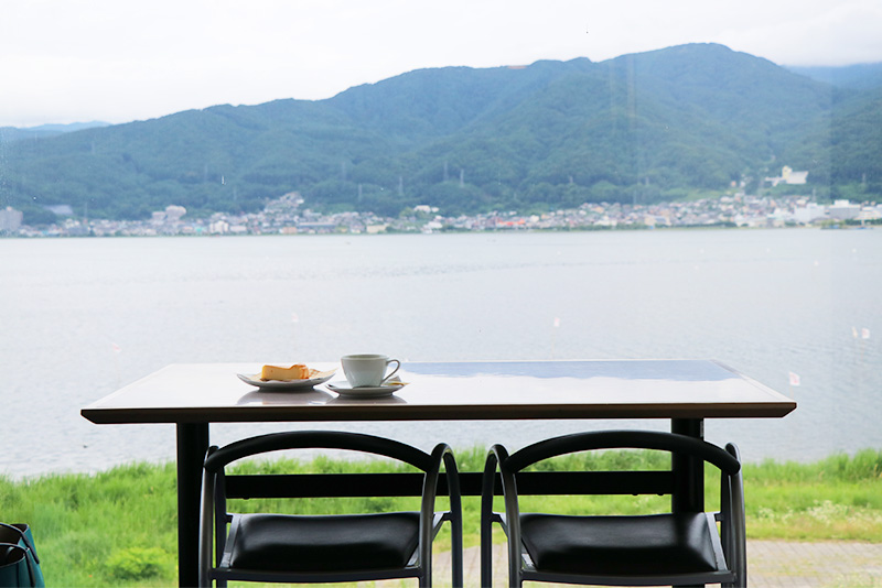 諏訪湖を望む落ち着いた空間で、地元のお客様にも日常のカフェタイムとしてご利用いただいております。